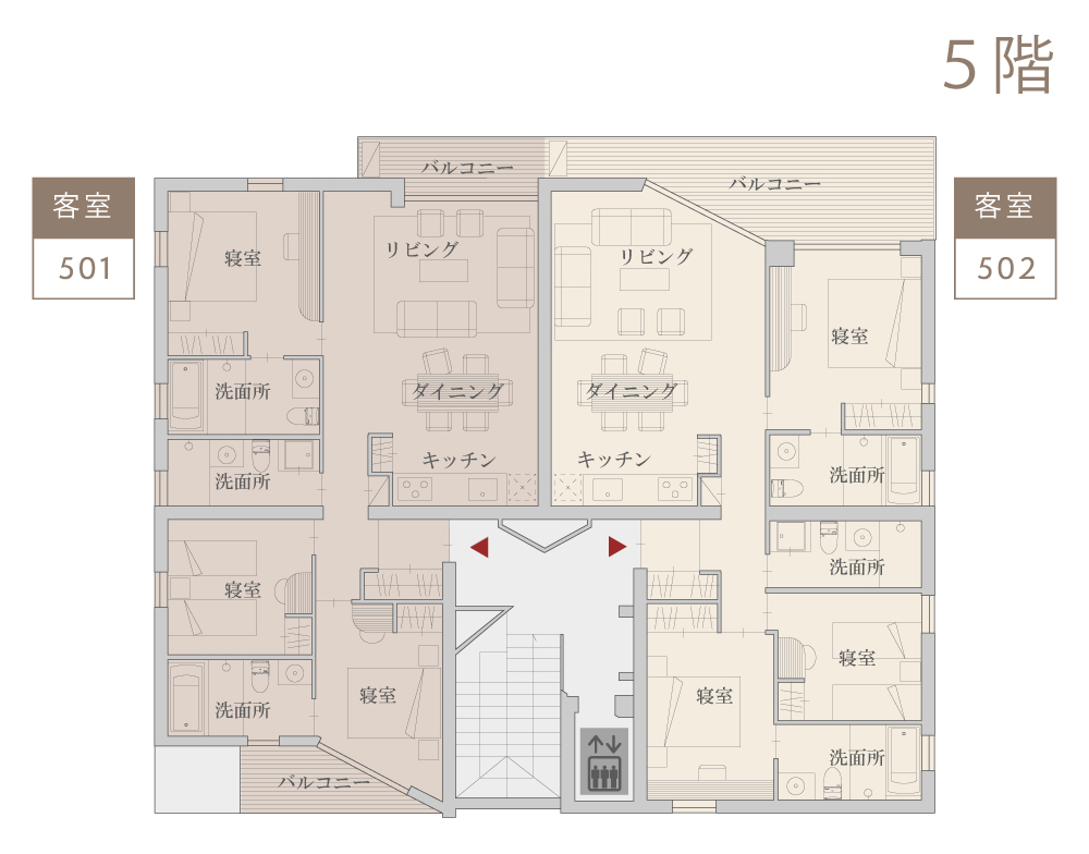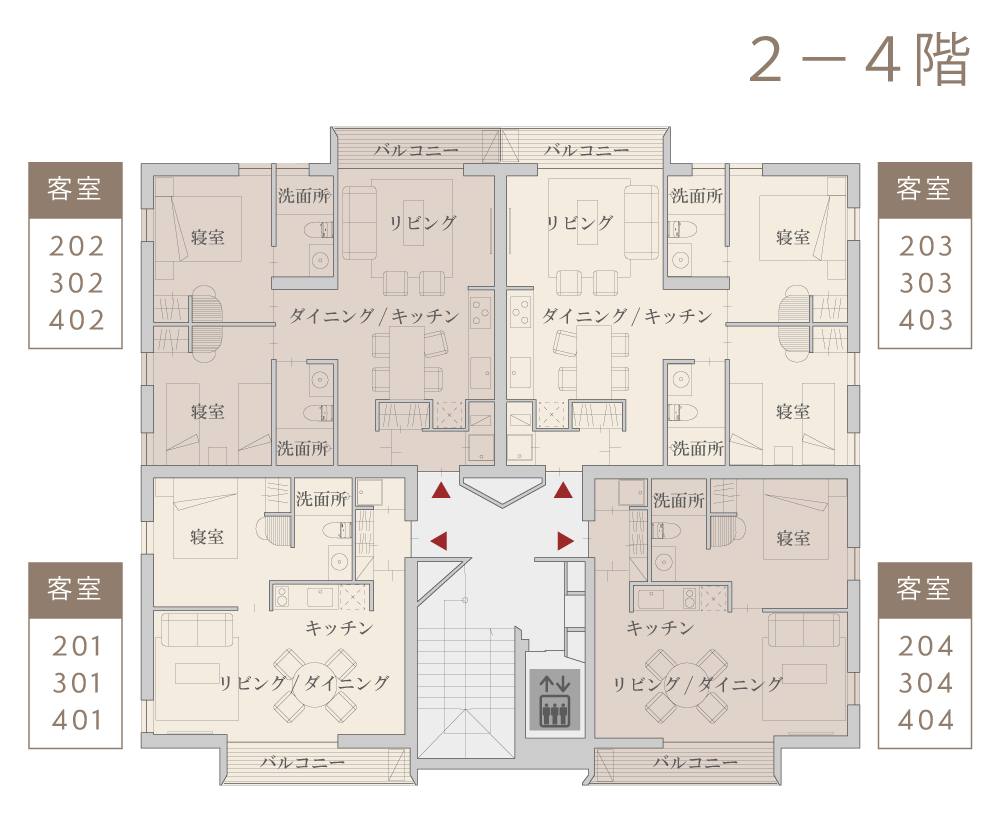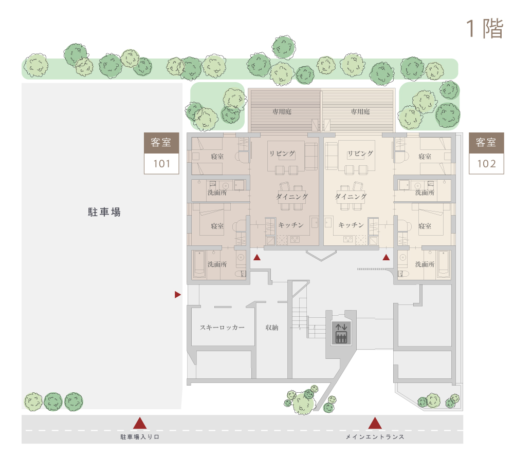 北海道の住宅設計・建築には、今も昔もコンクリート、レンガ、木材が欠かせません。これらの建築資材をコンドミニアムの主要接合部分に採用。個々の資材の持つ強さ、暖かさ、そして美しさが際立っています。すっきり整った心地よい室内インテリア空間は、高い機能性に優れ、大きな窓からは刻々と変化する富良野の美しい有機的な風景が一望できます。」